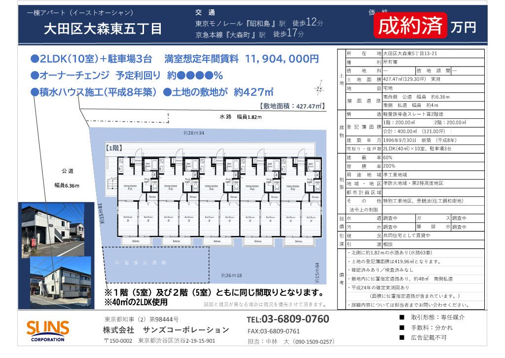 | 2025.11.10 | 成約御礼 『イースト・オーシャン』 一棟アパート売買 |